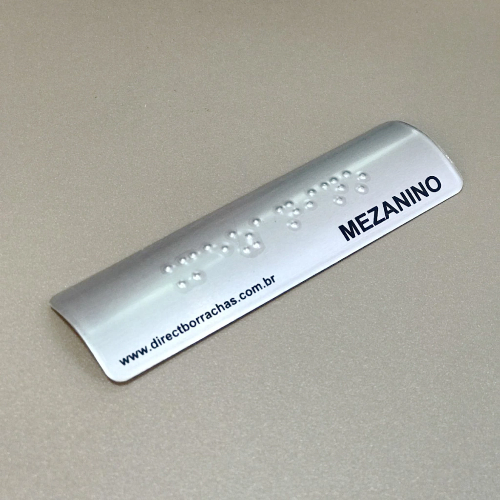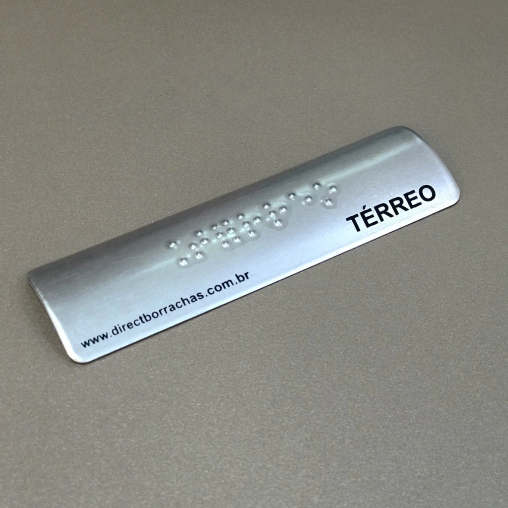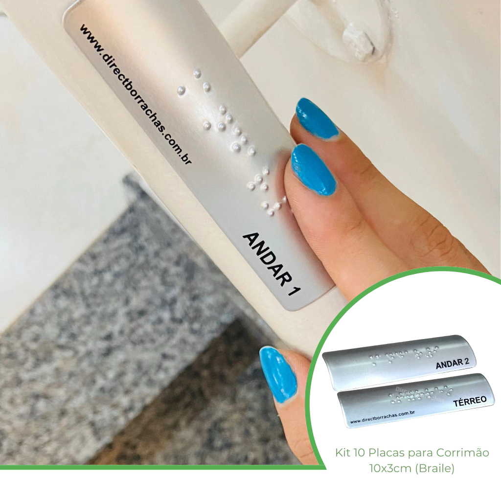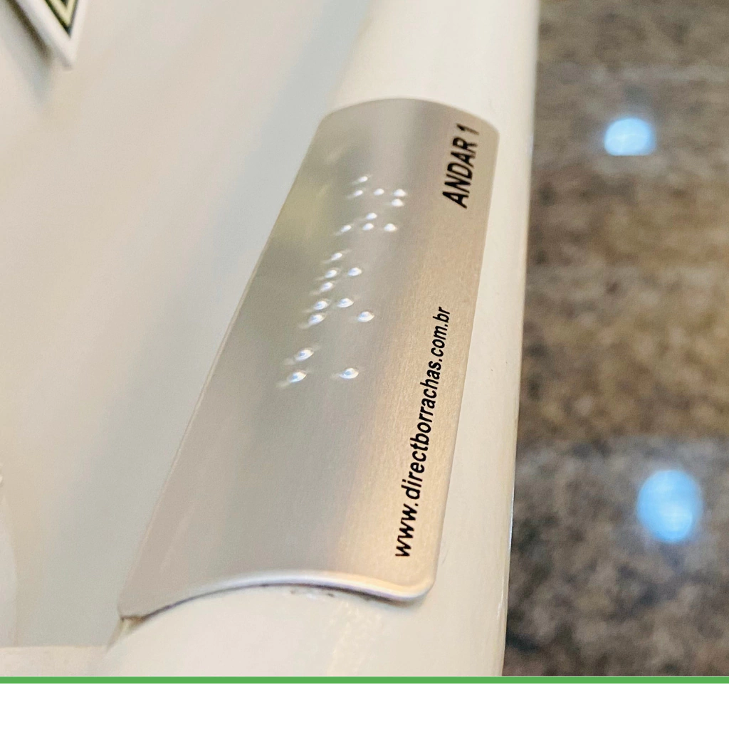 Placa Braille para Corrimão 10x3 cm Und. - Direct Borrachas A placa em braille para corrimão é fabricada seguindo a norma ABNT NBR 9050.